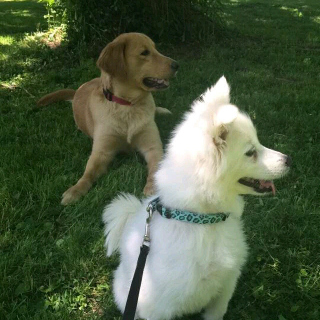 The most timid of my dogs is my Mini American Eskimo Dolce. She was a regift to me in an older stage in life. She is very skittish and hides in her crate when new people come. She is especially nervous around men.