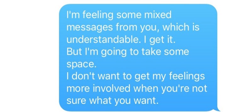 I told him what I wanted. It was for us to figure out what we were doing and be exclusive while figuring it out. I wasn’t going to be friends. I have done that before and it would be too hard to do it again.