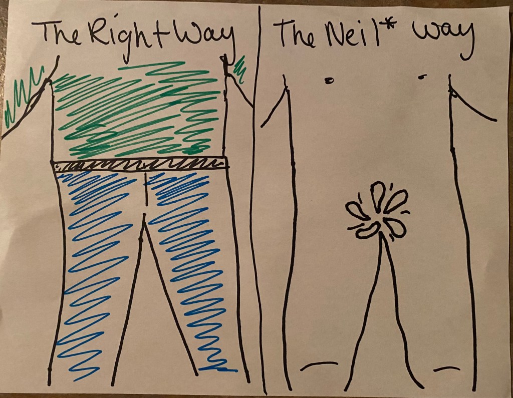 “Neil, I’m going to walk away for just one minute” (making a one with my fingers) “Just stay right there… do not get up”